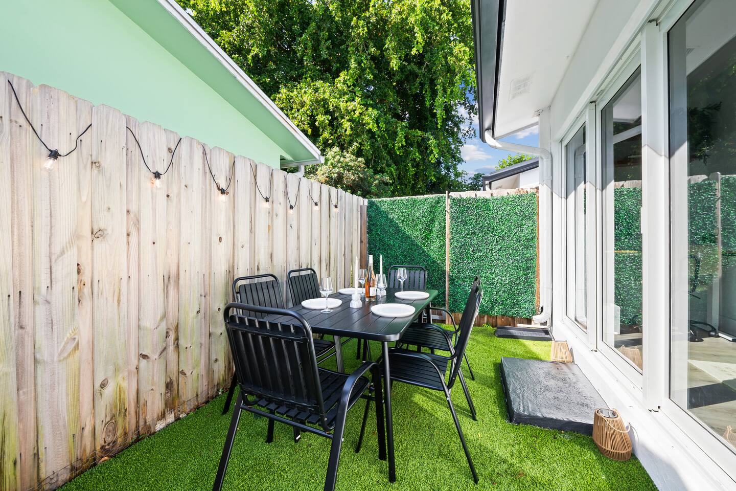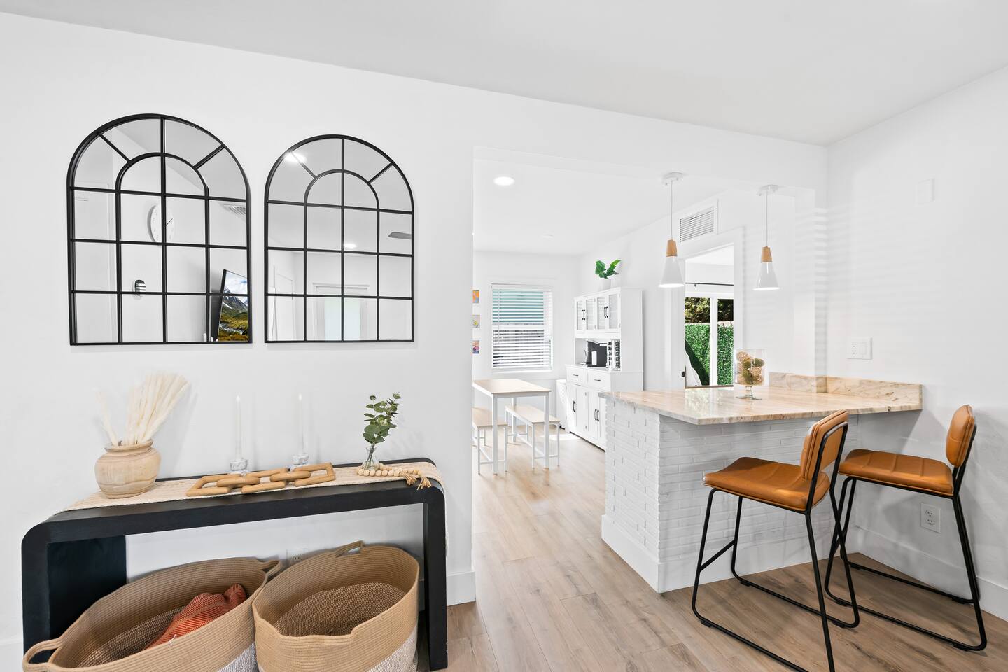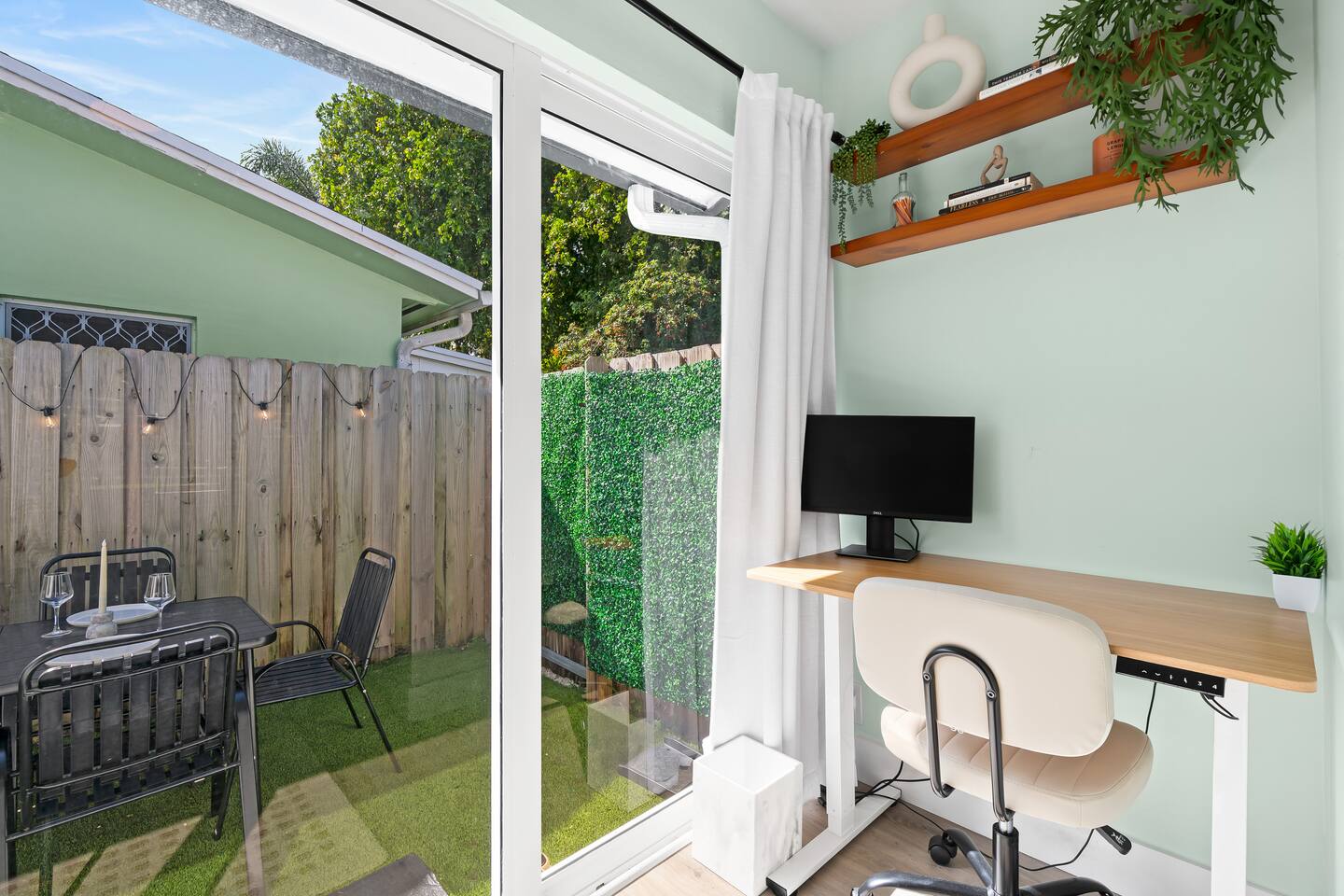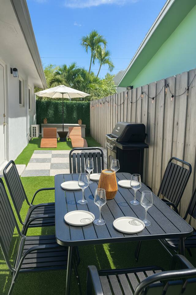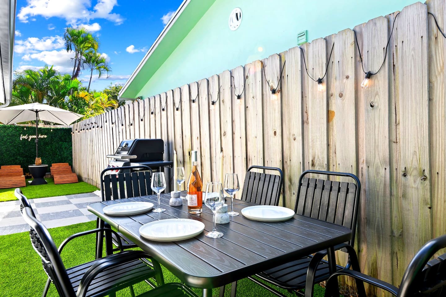 Welcome to The Retreat — a newly updated 3BR / 2BA private home offering hotel-level comfort, two workstations, and a fully fenced turf backyard oasis. Located in one of Fort Lauderdale’s most walkable neighborhoods — Publix is right behind the home, and you're 5 minutes to the beach. ⭐ Newly renovated 3BR / 2BA villa w/ private yard ⭐ 5 minutes to Fort Lauderdale Beach + Las Olas ⭐ Walkable – Publix & restaurants steps away ⭐ Private driveway parking for up to 4 cars Backyard & Outdoor Living ✸ Fenced turf yard w/ loungers & string lights ✸ Weber grill + outdoor dining for 6 ✸ Cornhole + space to unwind in the sun Inside the Home ✸ Spacious living room with 75” Smart TV ✸ Board games + cozy seating ✸ Fully stocked kitchen + indoor dining ✸ In-home washer/dryer ✸ Pack and play is available for your little ones Bedrooms ✸ All beds have hotel-quality mattresses & pillows ✸ Primary Suite: King bed, en-suite bath, walk-in closet ✸ Bedroom 2: Queen bed + Smart TV + workspace ✸ Bedroom 3: Two twins that can convert to a king + workspace Work & Wi-Fi ✸ Perfect for remote-work stays ✸ 2 dedicated desks ✸ Fast, reliable high-speed Wi-Fi ✸ Quiet neighborhood for productivity Beach Gear Included ✸ Beach chairs ✸ Towels Extras Guests Love ✸ Coffee station (coffee included!) ✸ Keyless entry ✸ Central AC, split units & ceiling fans ✸ Pet-friendly (pet fee applies) Location Highlights ✸Beach – 5 minutes ✸Las Olas – 8 minutes ✸Publix & Walgreens – 1 minute ✸Galleria Mall – 6 minutes ✸Hugh Taylor Birch State Park – 5 minutes ✸FLL Airport – 10 minutes We’re local Superhosts and we actually lived in this home — so it’s set up for real comfort, convenience, and style. We know the area inside-out and love sharing tips to make your stay amazing. Professional cleaning, fast communication, thoughtful touches, and a space designed for both relaxation and remote work. Welcome to your Fort Lauderdale Retreat — perfect for beach days, work trips, family stays, and everything in between.
