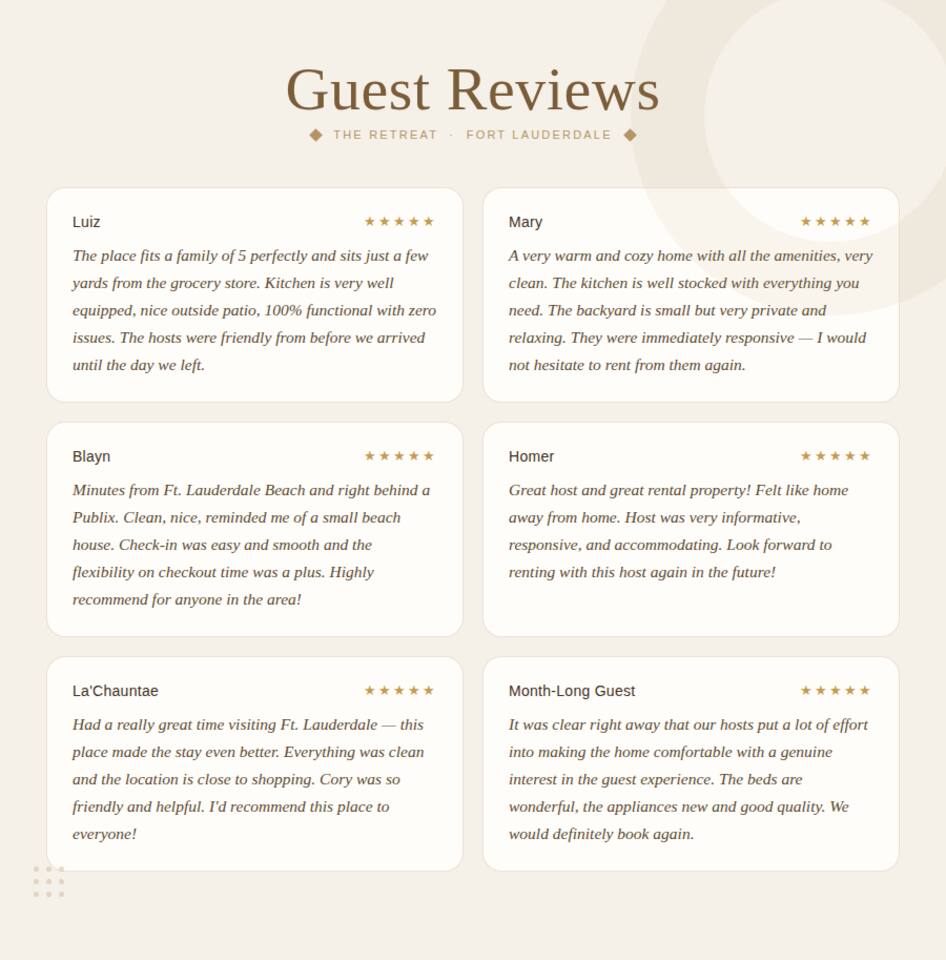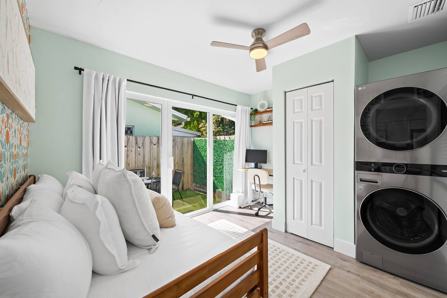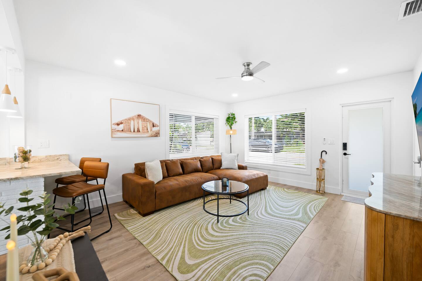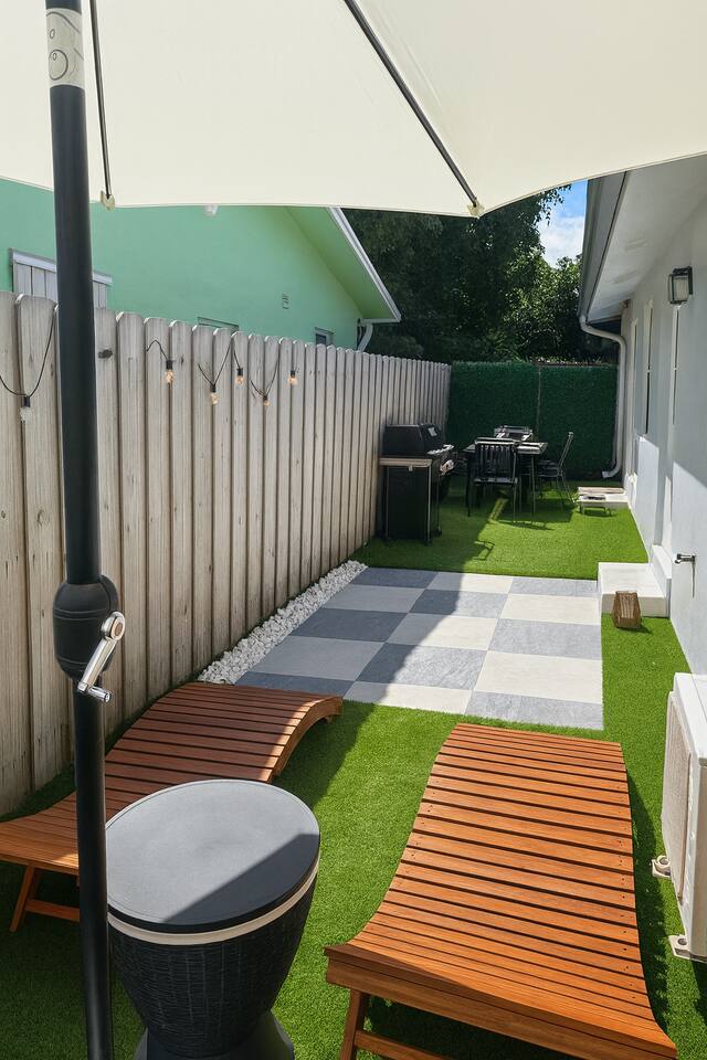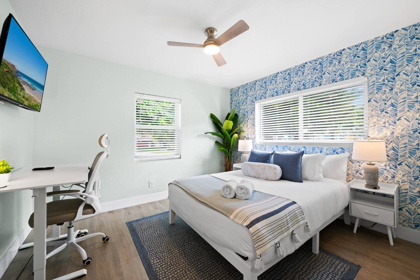 Welcome to The Retreat — a newly updated 3BR / 2BA private home offering hotel-level comfort, two workstations, and a fully fenced turf backyard oasis. Located in one of Fort Lauderdale’s most walkable neighborhoods — Publix is right behind the home, and you're 5 minutes to the beach. ⭐ Newly renovated 3BR / 2BA villa w/ private yard ⭐ 5 minutes to Fort Lauderdale Beach + Las Olas ⭐ Walkable – Publix & restaurants steps away ⭐ Private driveway parking for up to 4 cars Backyard & Outdoor Living ✸ Fenced turf yard w/ loungers & string lights ✸ Weber grill + outdoor dining for 6 ✸ Cornhole + space to unwind in the sun Inside the Home ✸ Spacious living room with 75” Smart TV ✸ Board games + cozy seating ✸ Fully stocked kitchen + indoor dining ✸ In-home washer/dryer ✸ Pack and play is available for your little ones Bedrooms ✸ All beds have hotel-quality mattresses & pillows ✸ Primary Suite: King bed, en-suite bath, walk-in closet ✸ Bedroom 2: Queen bed + Smart TV + workspace ✸ Bedroom 3: Two twins that can convert to a king + workspace Work & Wi-Fi ✸ Perfect for remote-work stays ✸ 2 dedicated desks ✸ Fast, reliable high-speed Wi-Fi ✸ Quiet neighborhood for productivity Beach Gear Included ✸ Beach chairs ✸ Towels Extras Guests Love ✸ Coffee station (coffee included!) ✸ Keyless entry ✸ Central AC, split units & ceiling fans ✸ Pet-friendly (pet fee applies) Location Highlights ✸Beach – 5 minutes ✸Las Olas – 8 minutes ✸Publix & Walgreens – 1 minute ✸Galleria Mall – 6 minutes ✸Hugh Taylor Birch State Park – 5 minutes ✸FLL Airport – 10 minutes We’re local Superhosts and we actually lived in this home — so it’s set up for real comfort, convenience, and style. We know the area inside-out and love sharing tips to make your stay amazing. Professional cleaning, fast communication, thoughtful touches, and a space designed for both relaxation and remote work. Welcome to your Fort Lauderdale Retreat — perfect for beach days, work trips, family stays, and everything in between.